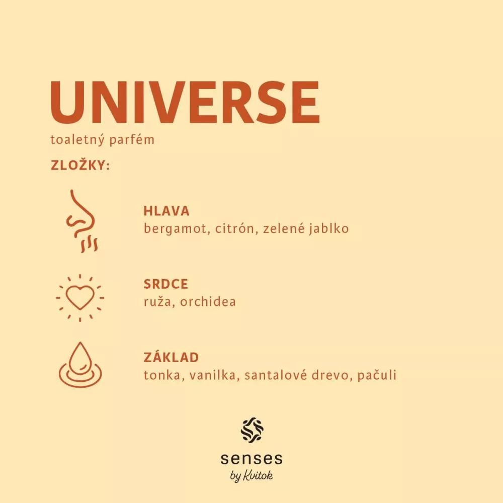 Accords d'agrumes en combinaison avec la pomme verte confèrent au parfum Universe une légèreté fraîche, le rendant adapté aussi bien pour elle que pour lui.